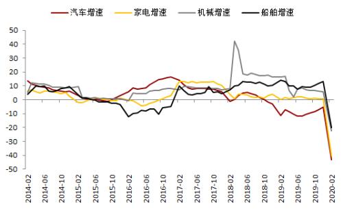 5.【制造业】复产复工有序推进,以工程机械、桥梁等大基建为先,船舶、机械的下滑幅度小于纯消费需求,这与3月中板表现亮眼相匹配,关注后期消费刺激政策