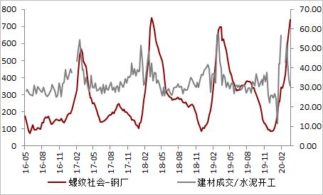 12.【建筑业】产量回升,但库存开始快速去化,螺纹表观需求回到去年水平,结合水泥开工恢复速度慢于成交,不排除下游提前备货透支需求的可能
