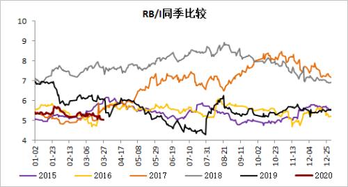 6.【品种比价】产量恢复+高库存,不支持钢厂高利润,材/原料逢高空仍是主节奏,近期关注卷厂的复产,可将热卷产量回升作为第一波入场信号