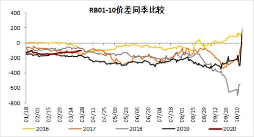 4.【月差】随现货启动,5月涨幅强于10,但后期面临库存压力,继续上行的空间不大